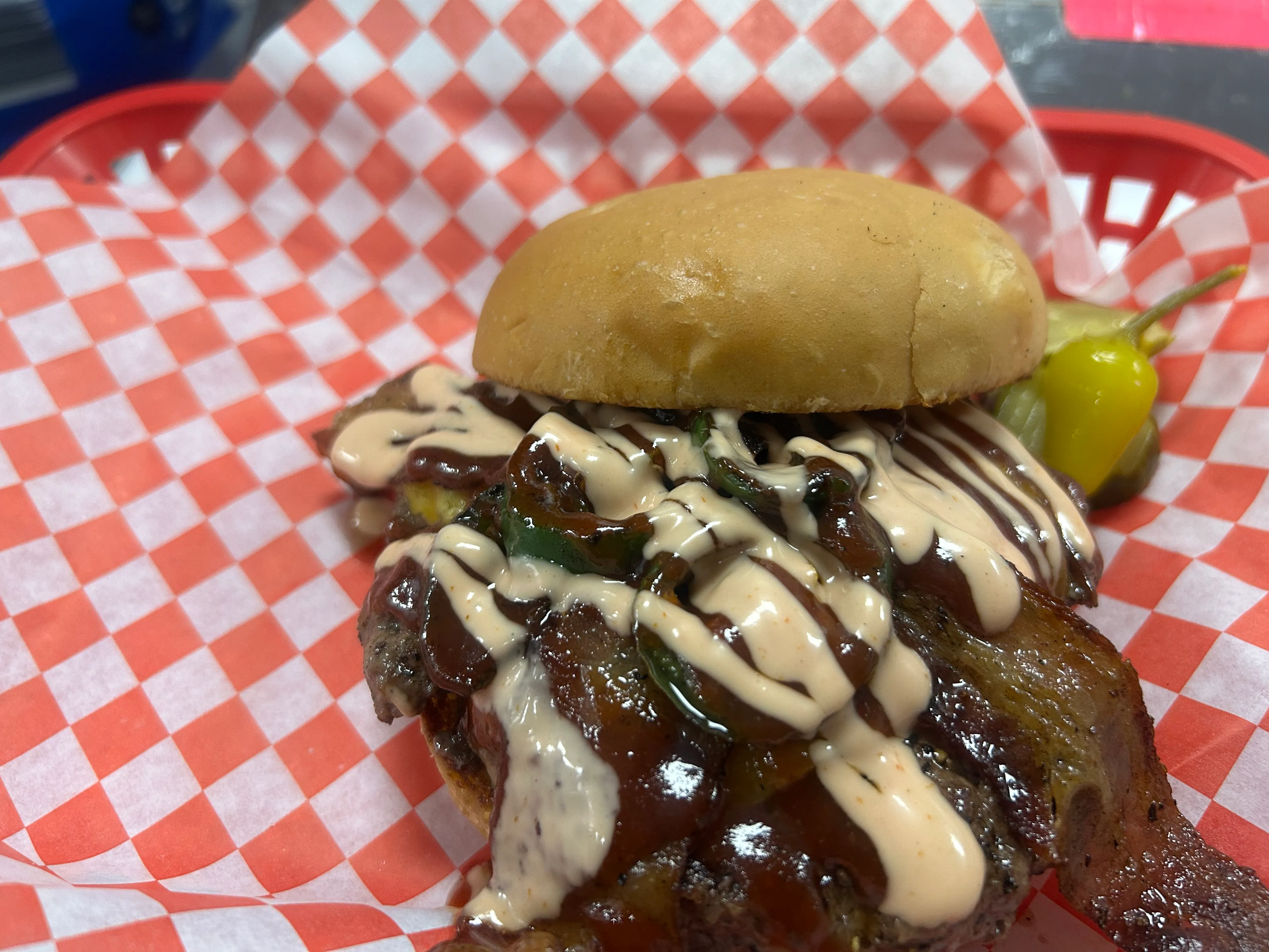 Topped With Cheddar,Bacon, Grilled Jalapeno, House BBQ Drizzle And Haven Burger Sauce.